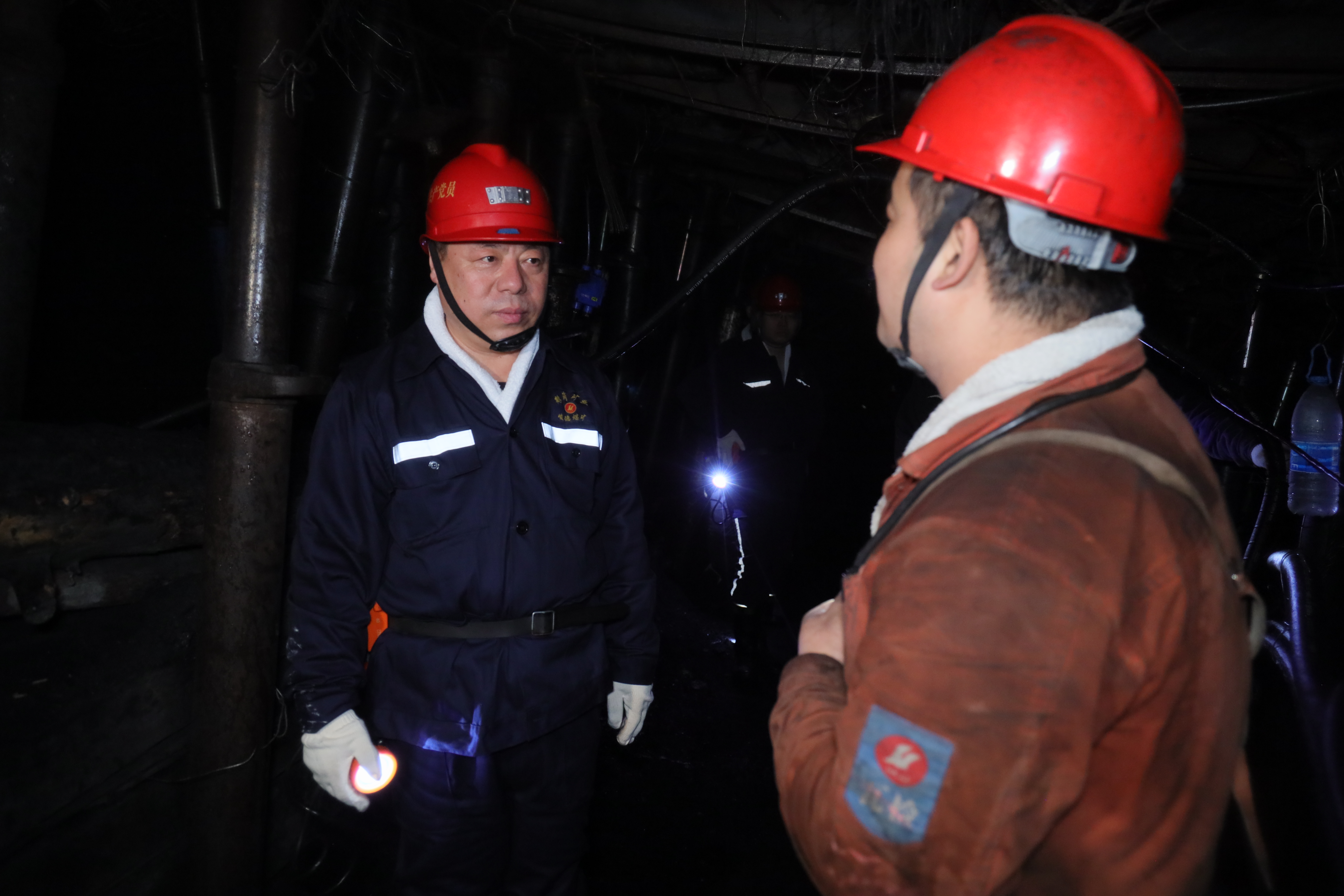 在綜采三區(qū)工作面,張秉德聽取了安瓦員的崗位描述,詢問了近一時期生產(chǎn)組織情況,檢查了安全生產(chǎn)標(biāo)準(zhǔn)化建設(shè)動態(tài)達(dá)標(biāo)工作。