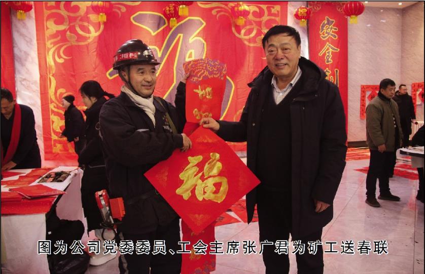 為弘揚(yáng)中華優(yōu)秀傳統(tǒng)文化,營(yíng)造喜慶、歡樂(lè)、祥和的節(jié)日氛圍,連日來(lái),礦區(qū)工會(huì)特邀我市書(shū)畫(huà)家深入煤礦,帶著公司黨委、公司的關(guān)懷問(wèn)候?yàn)樯a(chǎn)一線(xiàn)的礦工寫(xiě)春聯(lián)、送祝福。