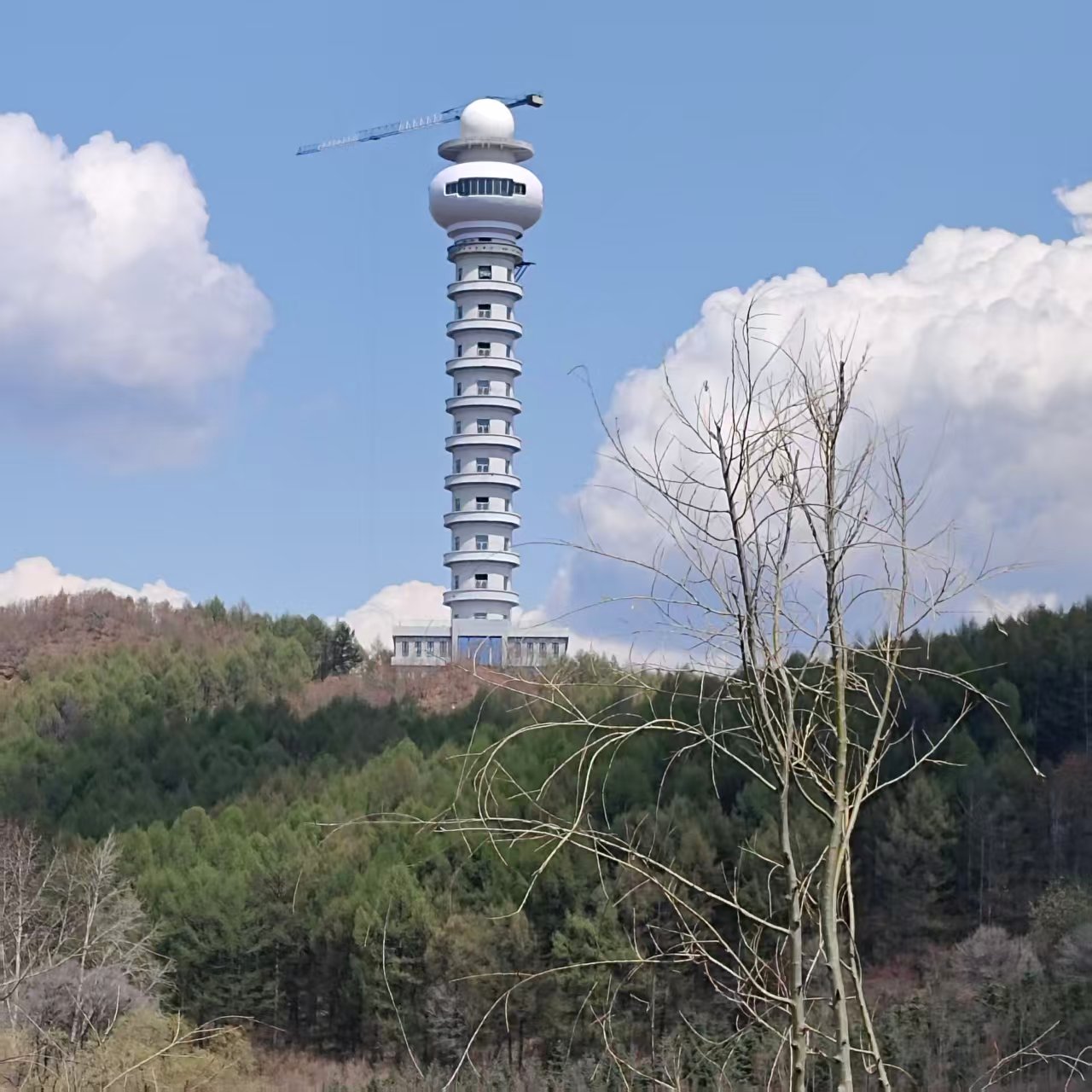 在鶴崗北山公園青云臺(tái)東側(cè)的山巔,萬(wàn)綠叢中,一座白色的氣象觀光塔靜靜矗立在山頂。這座刺破長(zhǎng)天的白色高塔,以94.9米的挺拔身姿,成為煤城最具辨識(shí)度的新地標(biāo),如今更是市民和游客爭(zhēng)相前來(lái)的網(wǎng)紅打卡地。它脫胎于新一代天氣雷達(dá)項(xiàng)目,既肩負(fù)著守護(hù)城市氣象安全的使命,又以開闊視野接納八方來(lái)客,在科技與自然的交融中,書寫著平凡山城的不凡篇章。