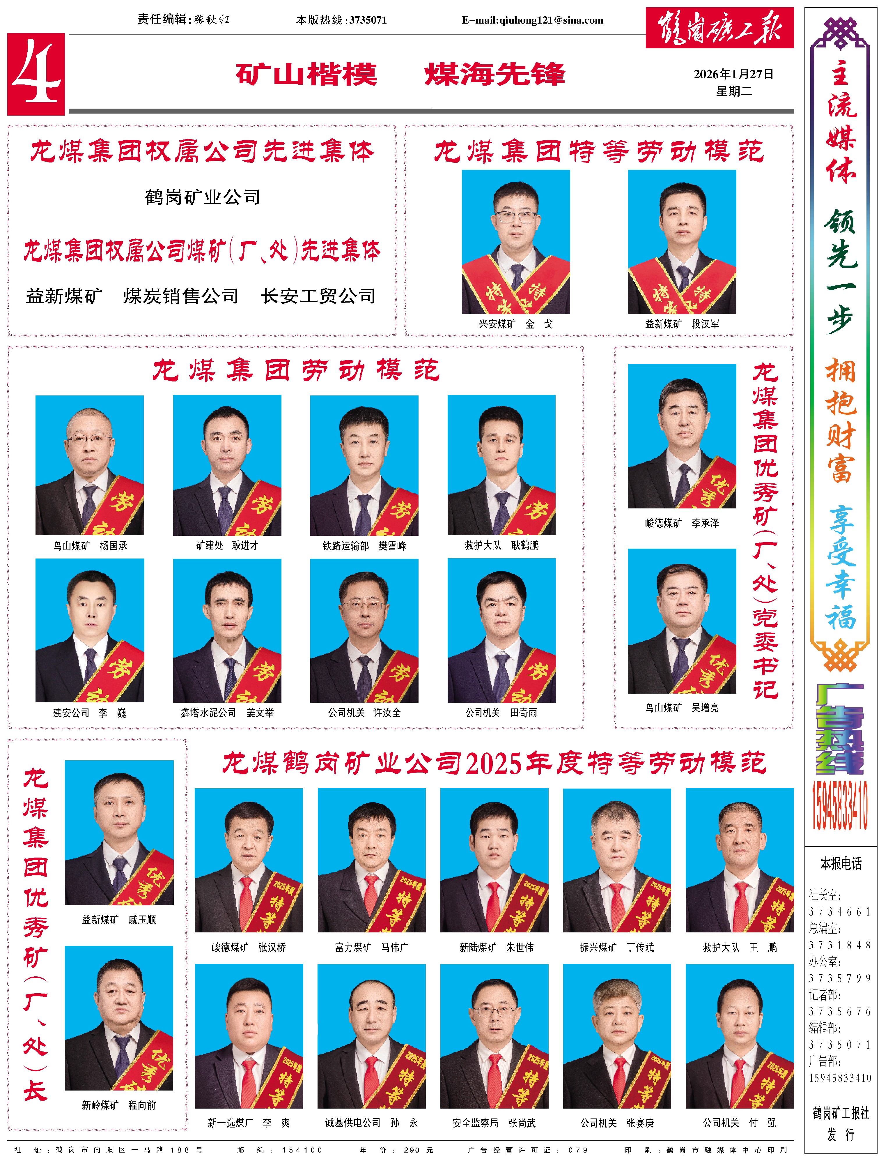 授予:峻德煤礦、興安煤礦、新嶺煤礦、鳥山煤礦、礦建處、熱電廠、鐵路運輸部、物資供應部、救護大隊、誠基供電公司、總公司留守處、保健食品公司等12個單位“先進單位”榮譽稱號。